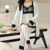 ALLSIDIG 3-PIECE-SETT - Dette settet består av en blondert kamisole, matchende bukser og en koselig morgenkåpe, noe som gir deg flere alternativer som passer til humør og anledning. Miks og match for uendelige stylingmuligheter.