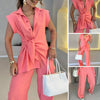 Paketet innehåller: 1* Elegant set med ärmlös blus och löst sittande byxor med hög midja