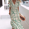 Kortermet maxi kjole med V-utringning og løst trykk for kvinner