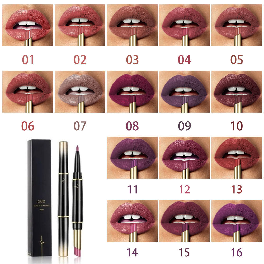 Leppeblyant med to ender Automatisk leppestift Non-stick vannfast matt leppestift