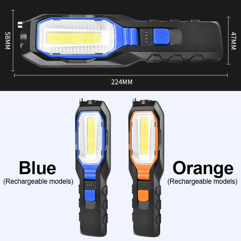 Denne magnetiske multifunksjonelle sammenleggbare arbeidslampen er perfekt for dine ulike belysningsbehov. Den kan rotere belysning fra flere vinkler, COB-sidelys kan rotere 90°, og braketten kan rotere 180°. Den er enkel å bruke, bærbar og effektiv, noe som gjør arbeidet ditt mer praktisk.