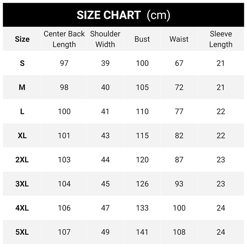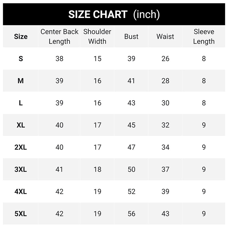 Størrelse:S, M, L, XL, 2XL, 3XL, 4XL, 5XL