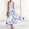 Oseanisk maxikjole uten ermer med blomstertrykk