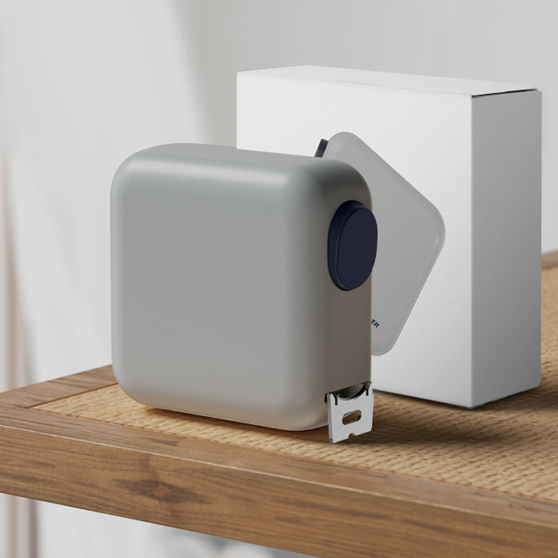 SELVLÅSENDE SIKKERHETSFUNKSJON - Utstyrt med et mykt gummiert målebånd og en automatisk låsemekanisme, holder målebåndet seg på plass når det trekkes ut og forhindrer ulykker når det trekkes inn, noe som gjør det tryggere å bruke.