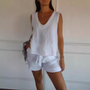 Pakken inkluderer: 1 * V-hals ermeløs topp med knyting bak
