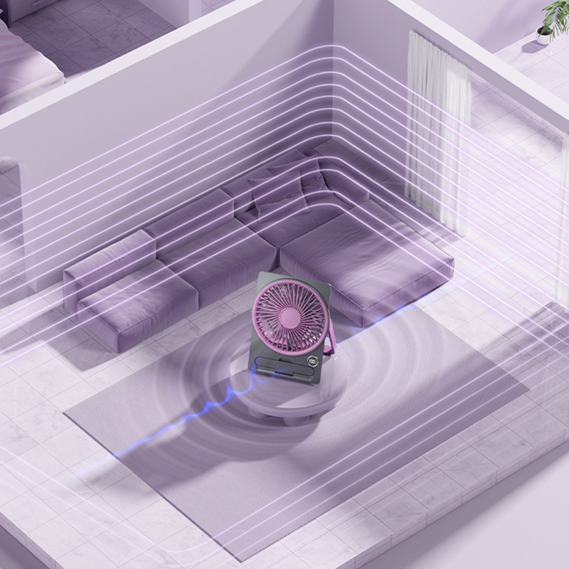 6-TRINNS VINDJUSTERING FOR TILPASSBAR KOMFORT: Med 6 justerbare vindhastighetsinnstillinger lar denne miniviften deg tilpasse luftstrømmen etter dine preferanser. Enten du trenger en lett bris eller en sterkere vindpust, kan du enkelt bytte mellom hastigheter for optimal komfort.