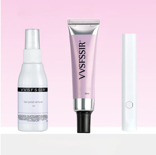 - Tørk av det sølte limet med ren bomull og slå på lampen i ett minutt.