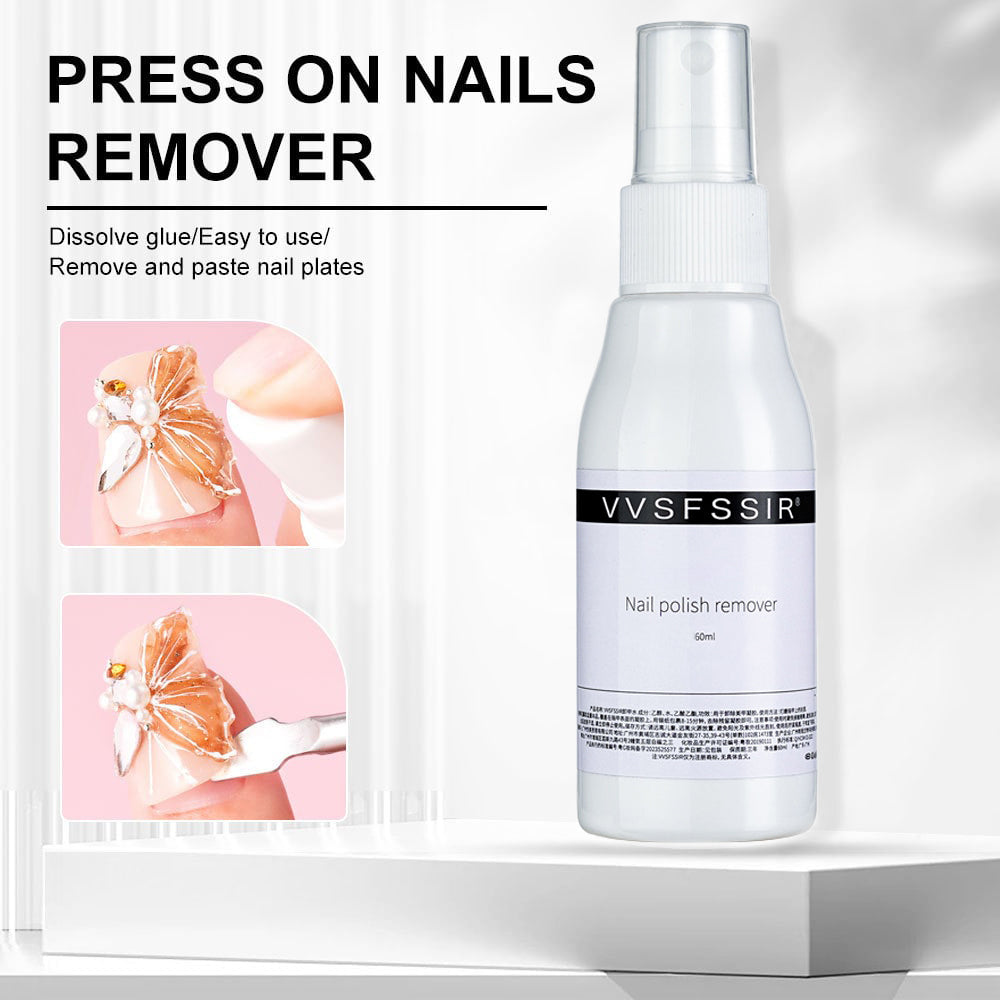 - Spray gel neglelimfjerner på neglene, og fjern deretter de pressede neglene forsiktig med en akrylpinne.